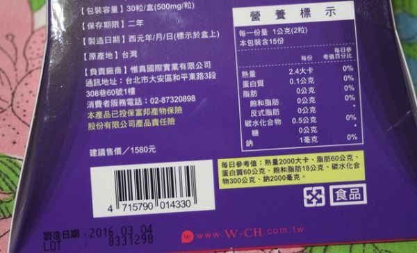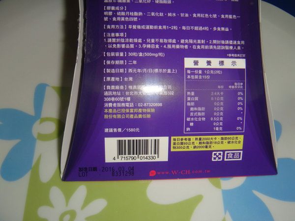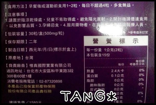 ▲每一次搭配500cc的水,紫色的好搶眼,一盒大約是8天份量,甜蜜是當保養吃。