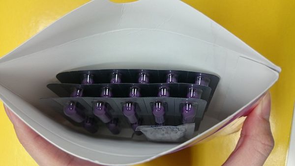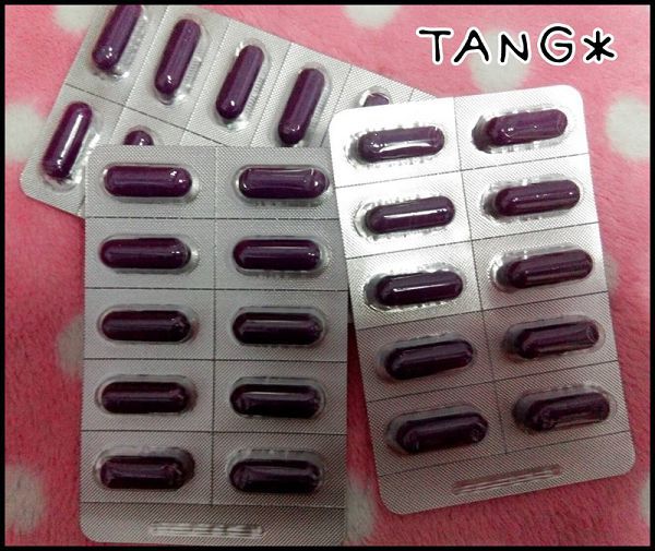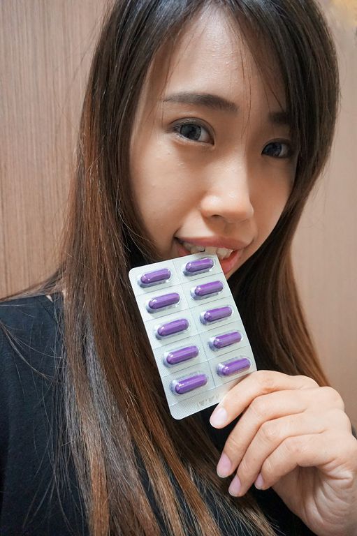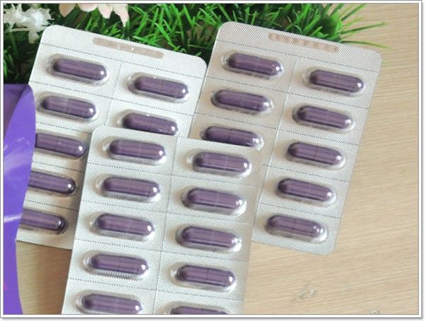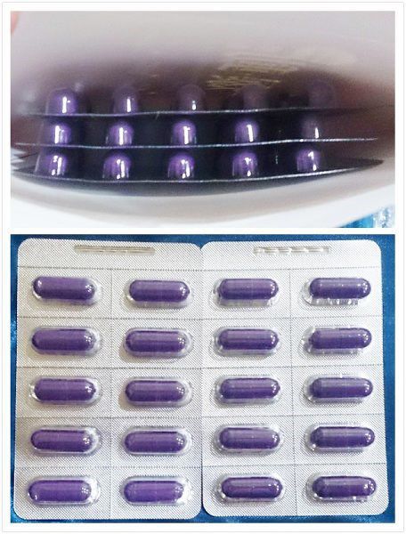 一盒裡共有3排,是膠囊狀的,很特別跟外包裝一樣是紫色
