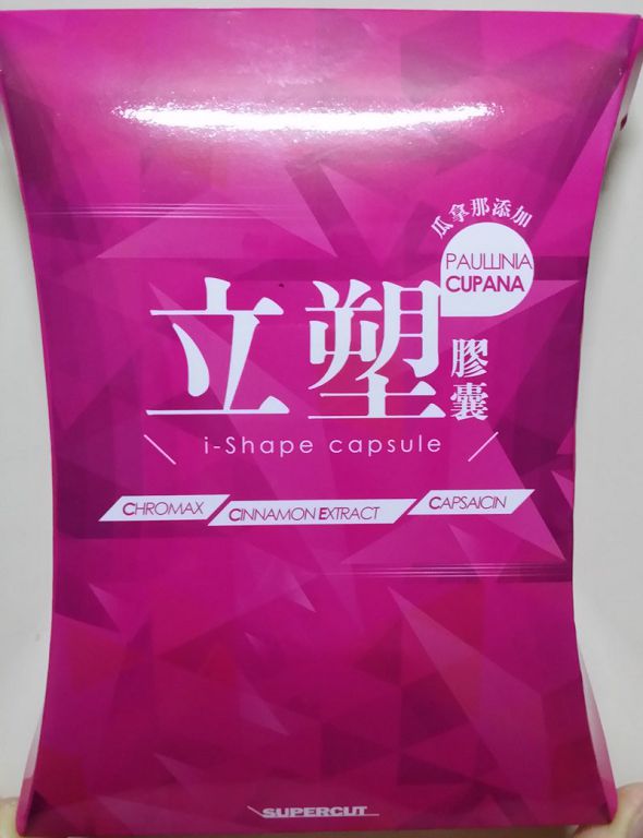 Supercut塑魔纖立塑膠囊的成分有:瓜拿那萃取粉、肉桂萃取粉、辣椒萃取物(唐辛子)、吡啶甲酸鉻、番瀉葉粉末、玉米澱粉、氧化鎂、二氧化矽。