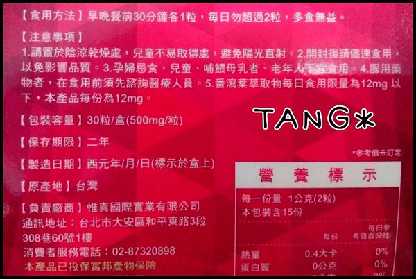 食用方式:早晚餐前30分鐘各1粒,每日不超過2粒。(多食無益)