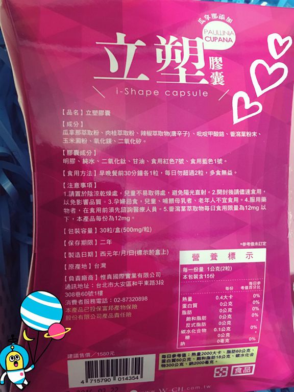 1.「瓜拿那」是原產於亞馬遜流域的一種藤蔓植物,富含酵素可以幫助排便順暢,並且能抑制脂肪分解酵素,此外也有降低食慾的效果喔~~萃取物中含有天然咖啡因,可以提高新陳代謝率以及排出多餘水分!