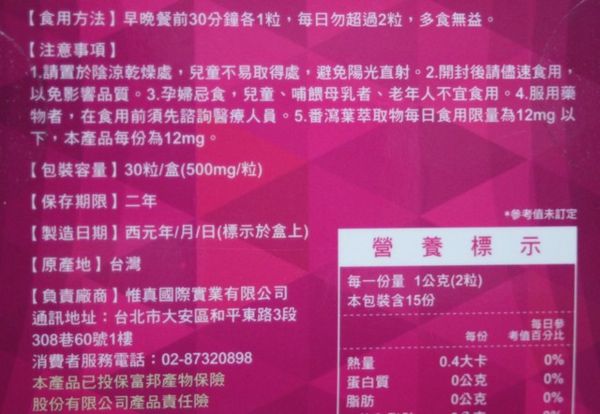 食用方式:早晚餐前30分鐘各1粒,每日不超過2粒。(多食無益)