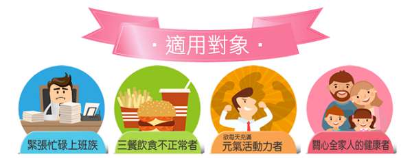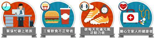 答:1. 容易覺得疲倦  2.想要調整體質  3.營養攝取不均衡