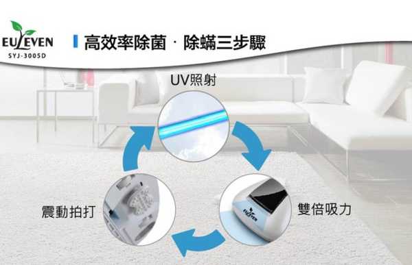使用UV照射+震動拍打+雙倍吸力來除塵及殺蟎確實比較安心嘍!