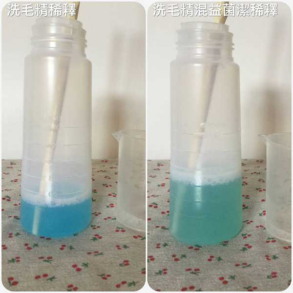 比例為1:30混合於寵物(不含有抗菌或殺菌成份)的沐浴劑