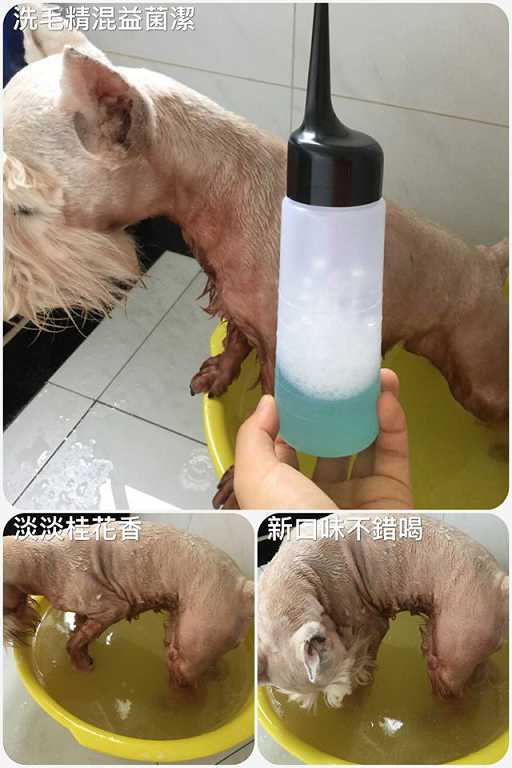 寵物洗澡:將本產品1:30混合於寵物(不含有抗菌或殺菌成份)的沐浴劑中使用,