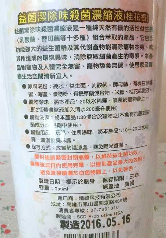 謝謝【女人知己試用大隊】提供的–益菌潔居家清潔系列--除味殺菌濃縮液寵物專用桂花香
