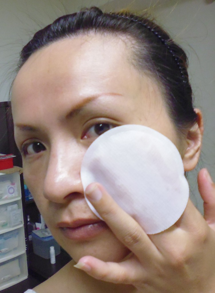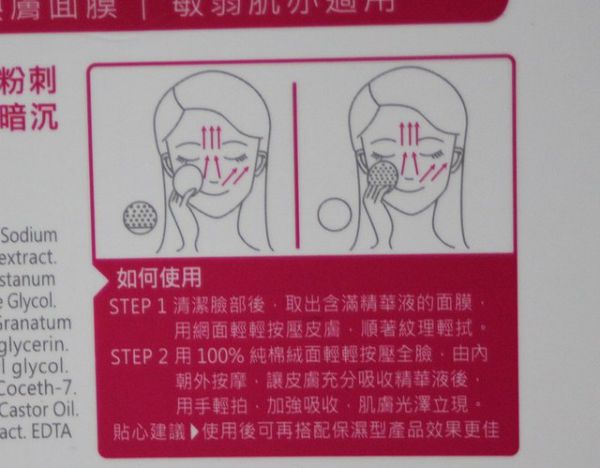 使用去角質煥亮膜的感覺上到輕拭結束,都沒有紅癢刺激感出現或紅腫感