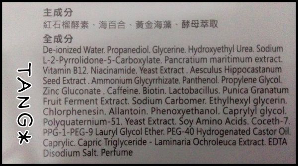 紅石榴酵素、海百合、黃金海藻、酵母萃取