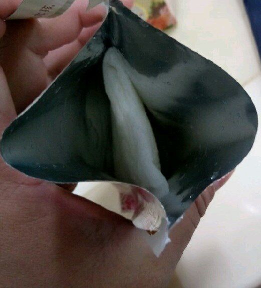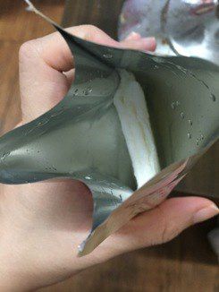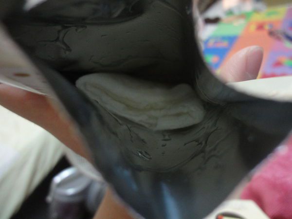 怪不得會這麼重><裡面的精華液滿滿的 都要滿出來了 拆開拿出一片拿