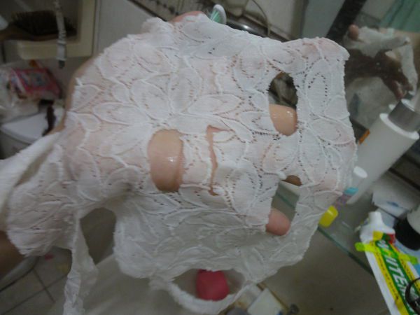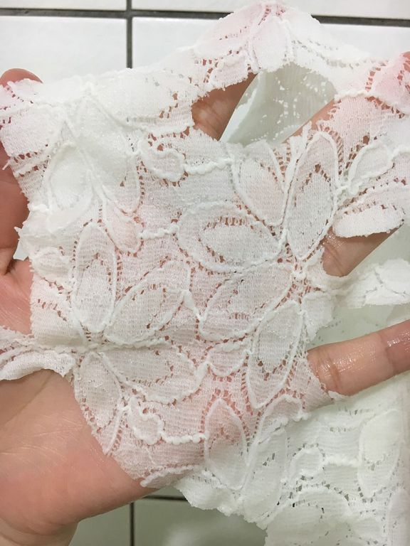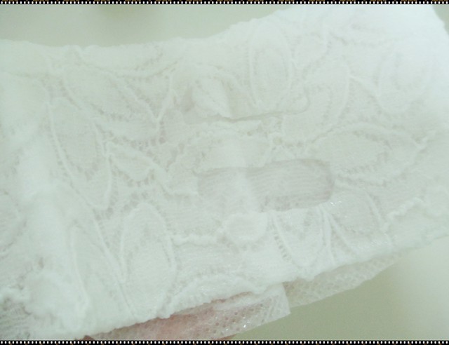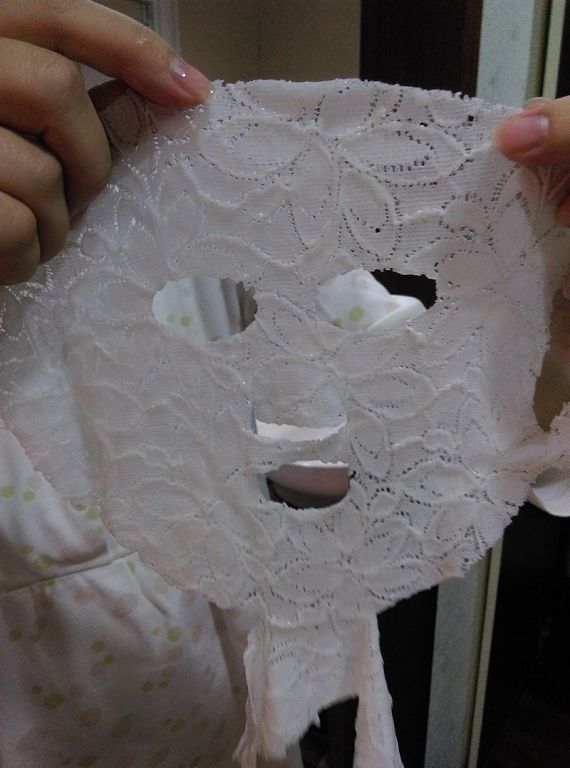 攤開後的蕾絲拉提式面膜布,帶有一點點的重量感,每一處的緞面均裁切的很棒很精緻,相當有質感,比我想像中的還要高級呢!
