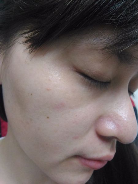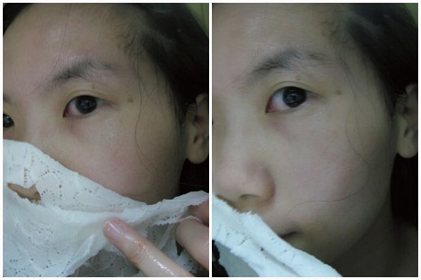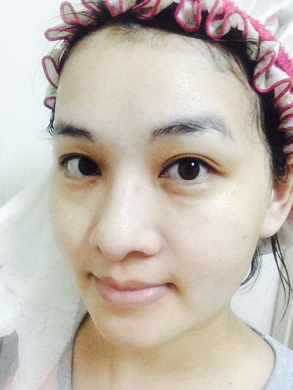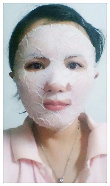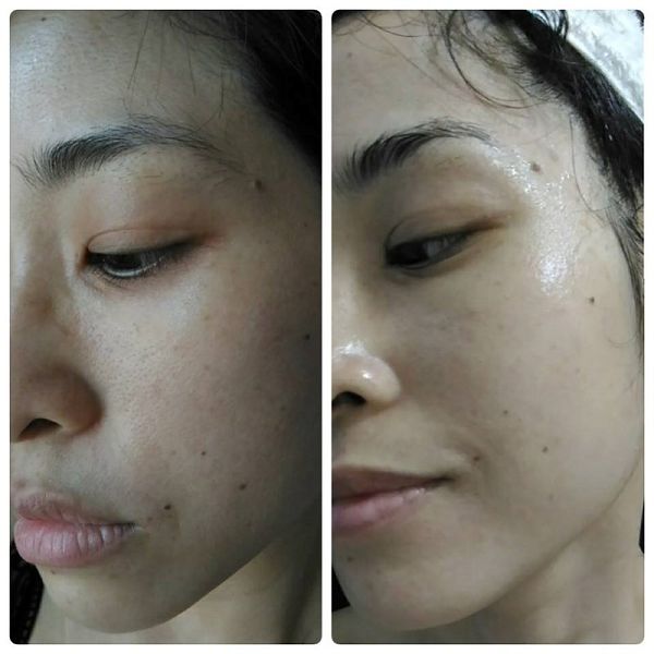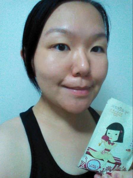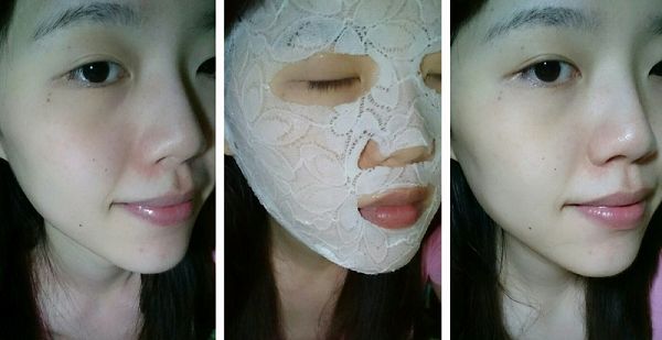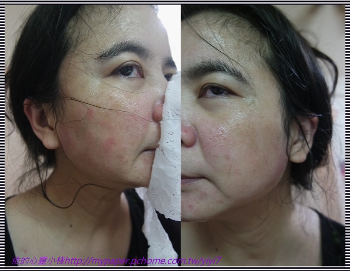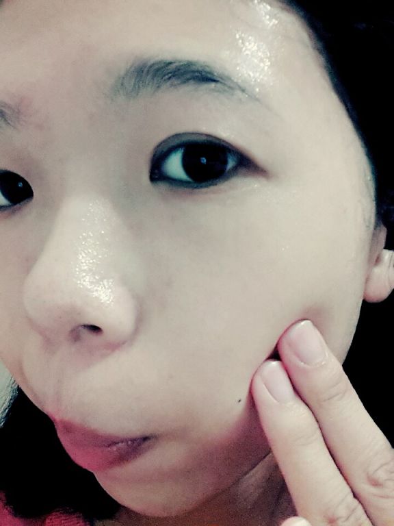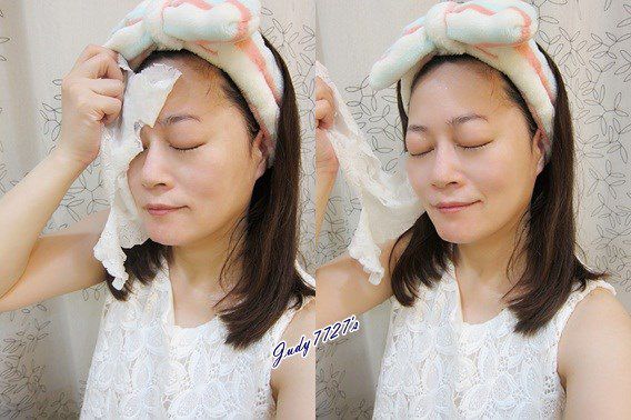 經過了15-20分鐘後取下面膜,肌膚充滿光澤度,精華液完整的覆蓋於肌膚上