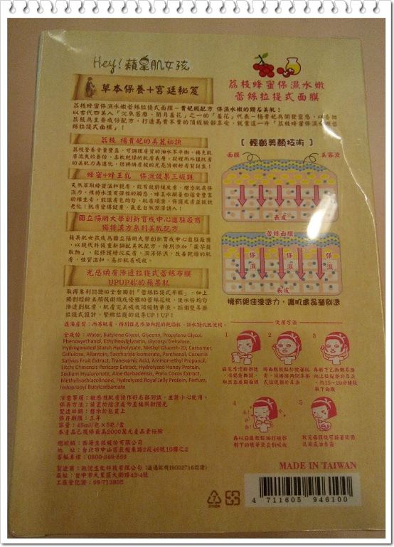 的說,蜜蜂+小女生+荔枝,充分表達出這面膜風格囉