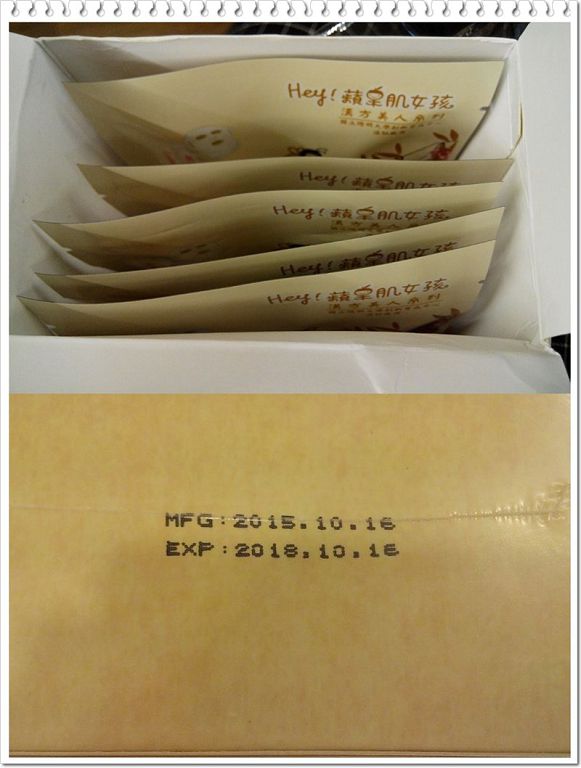 一盒有5片面膜,它的名稱真的很Q -Hey!蘋果肌女孩,外包裝也挺可愛