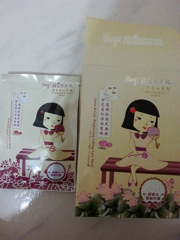 這次收到的產品是Hey!蘋果肌女孩 荷花薏仁淨白緊緻蕾絲拉提式面膜