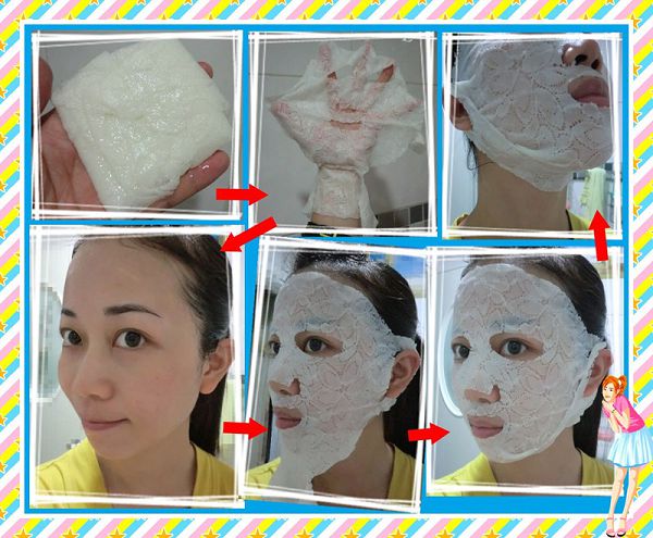 用過的面膜有布狀、泥狀、凍膜狀的面膜,蕾絲面膜我倒還是第一次嘗試呢~