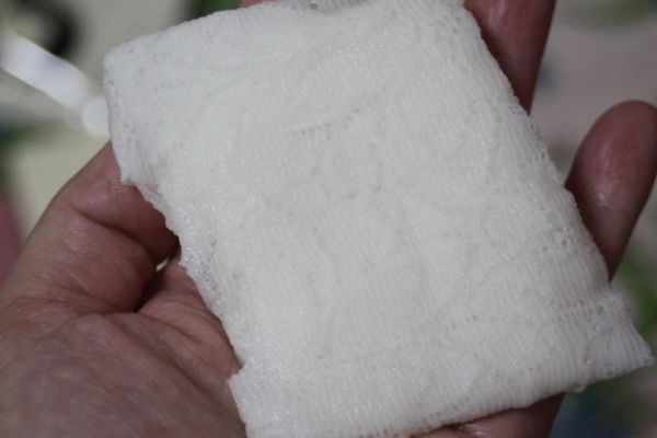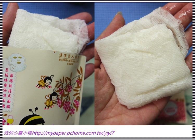 蕾絲面膜布的材質摸起來QQ的,很有彈性,