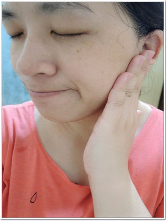 4. 再以指腹輕輕拍打臉部剩下的精華液直到吸收