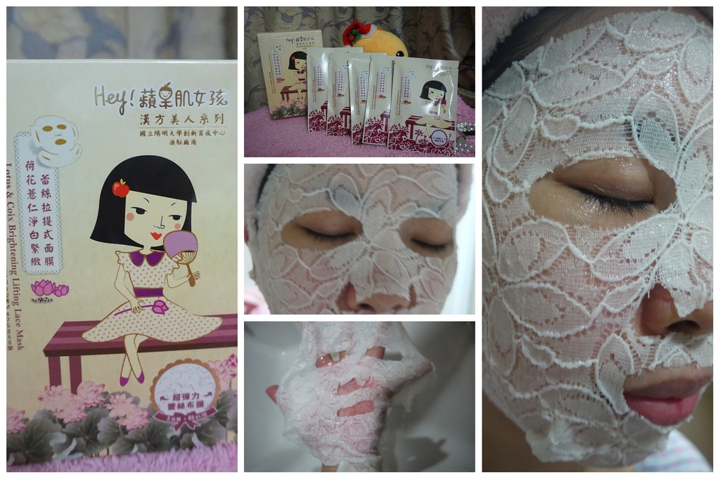 是由女人知己試用大隊提供的,Hey蘋果肌女孩荷花薏仁淨白緊緻蕾絲拉提式面膜