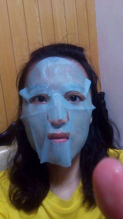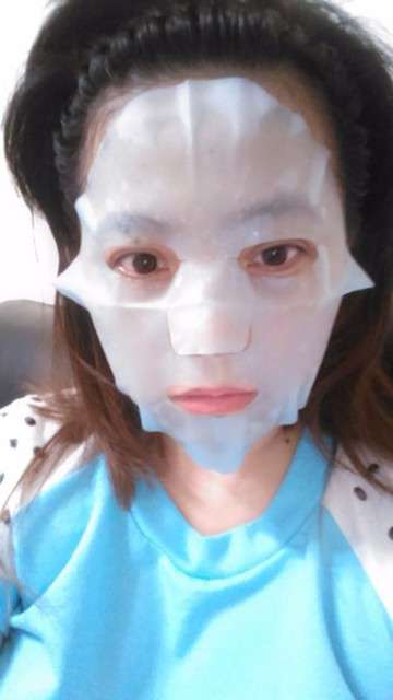 面膜敷在臉上要拉近才看的到,完全符合我的臉型,緊密貼合,