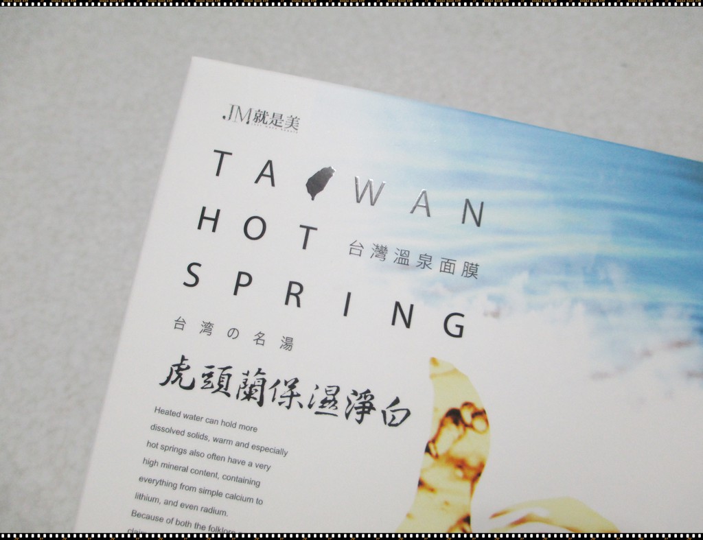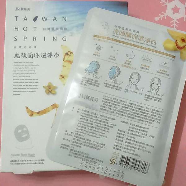 謝謝【女人知己試用大隊】提供的–JM就是美台灣溫泉水面膜試用機會,最喜歡得到面膜的試用,因為超喜歡敷面膜的😁。大家都知道泡溫泉對身體好處很多,還能使肌膚光滑細緻,因為溫泉裡含有多種礦物質包括微量元素,美膚的效果更勝許多保養品。台灣溫泉水面膜裡頭成份含有溫泉水,感覺就是對肌膚很好呀!而且是台灣製造,當然要多多支持國產產品❤️❤️