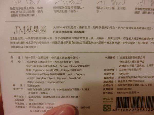品牌: 就是美 JUST MAKE 台灣溫泉面膜