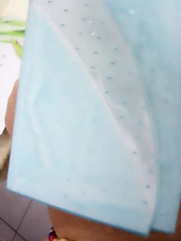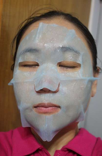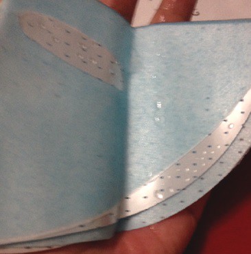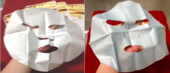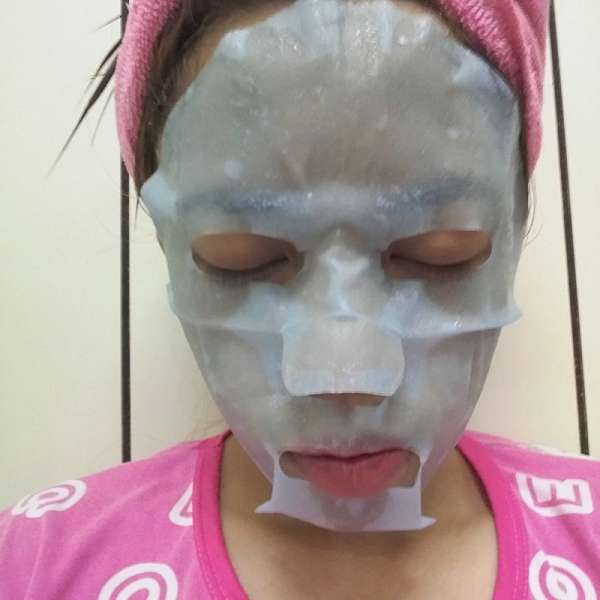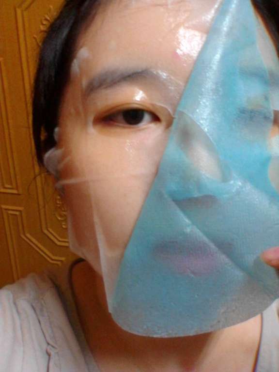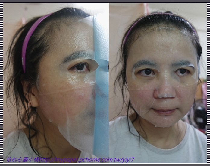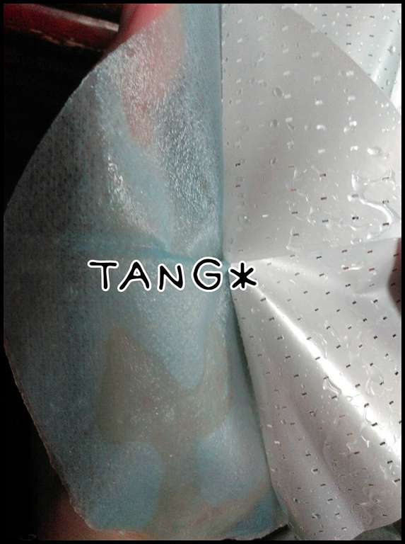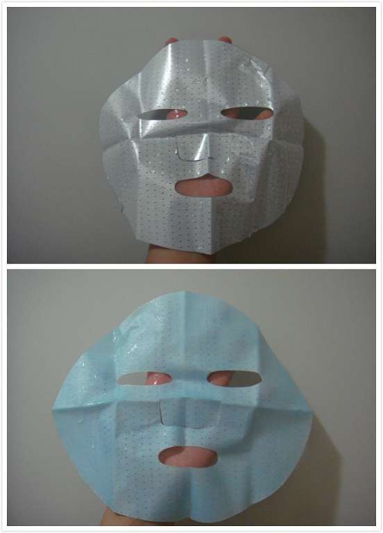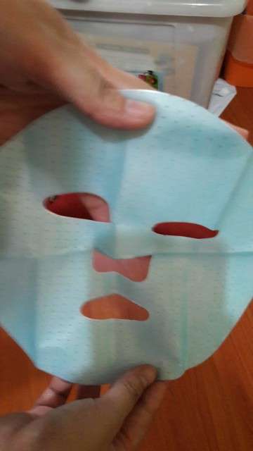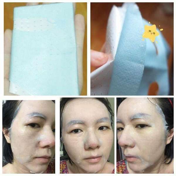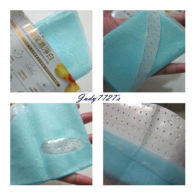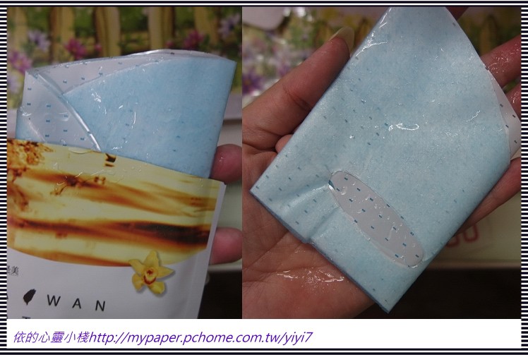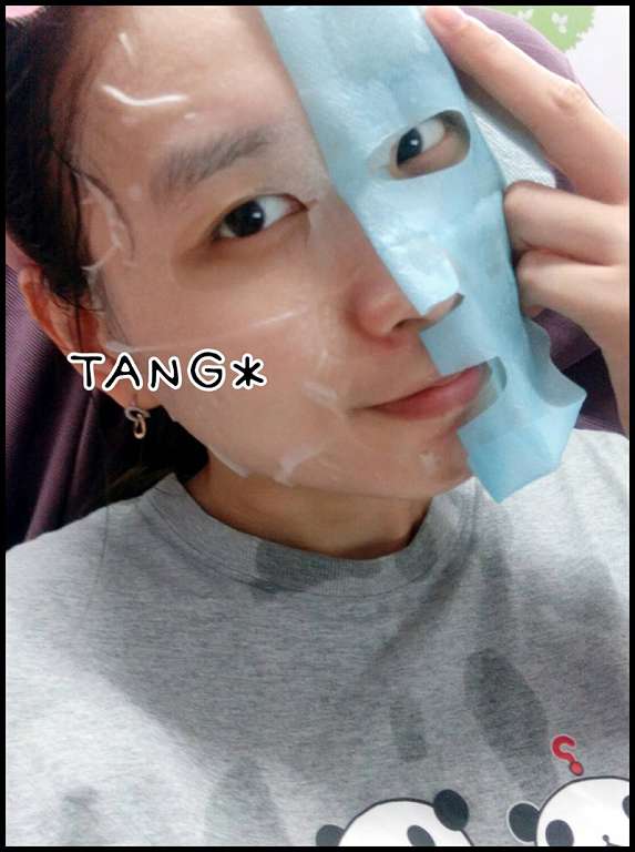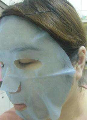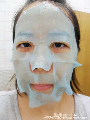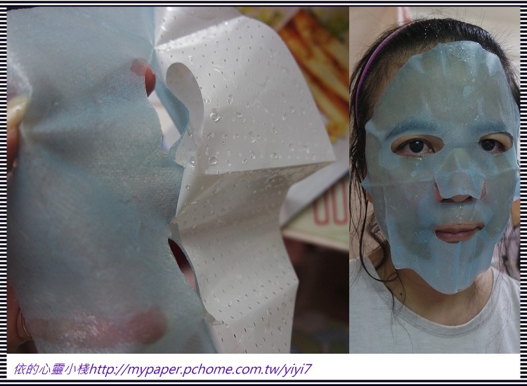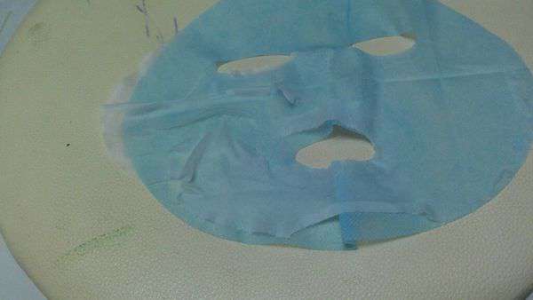 使用方式與其他面膜雷同,主要是使用夾在白色珍珠膜與藍色不織布中間的面膜