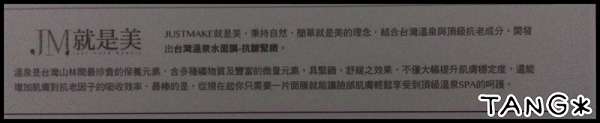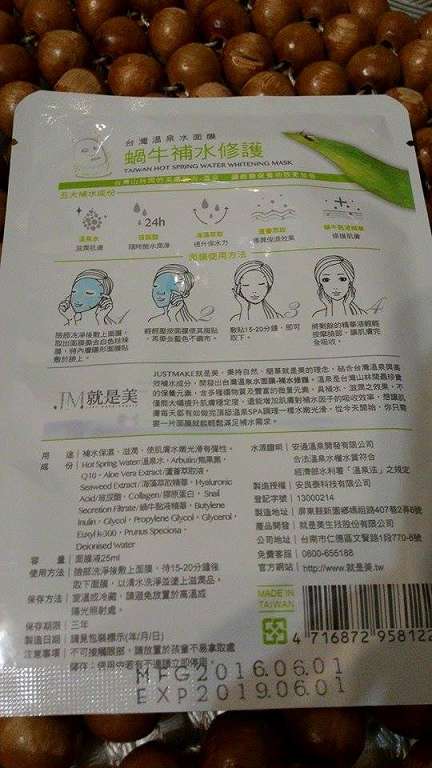 一邊實地體驗JM(JUST MAKE)就是美台灣溫泉水面膜蝸牛補水修護