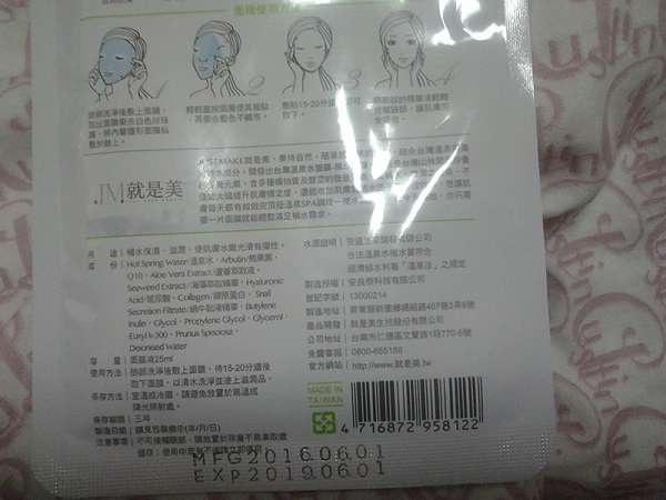 謝謝【女人知己試用大隊】提供的–JM就是美台灣溫泉水面膜