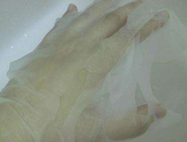 面膜的材質使用了頂級隱形天絲,敷的時候會感覺到它相當的服貼,