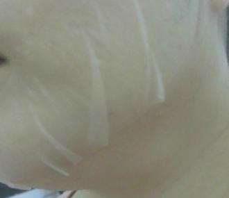 原本摸起來粗粗的兩頰也變的柔嫩很多。
