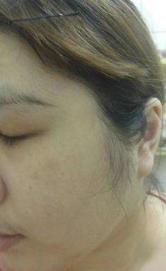 素顏照:臉上泛油光,臉上有倦容,膚色有黯淡無光的初老症狀