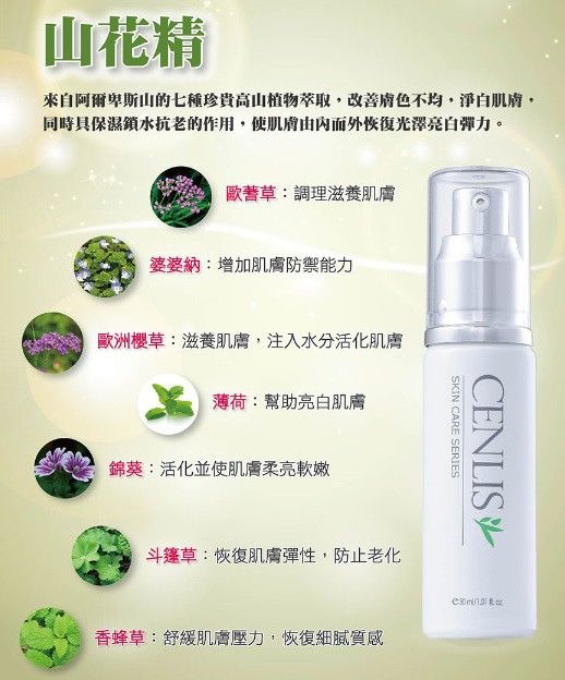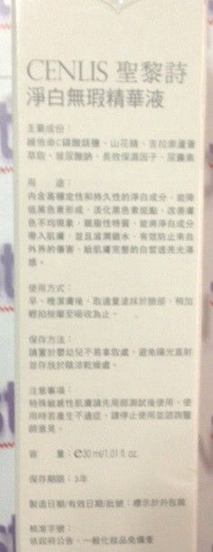 "CENLIS 聖黎詩淨白無瑕精華液"號稱