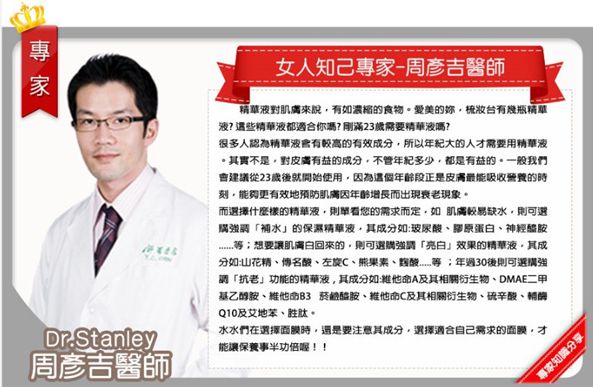 把臉先做好清潔,之後先上化妝水,先讓肌膚保濕,再來就是使用精華液