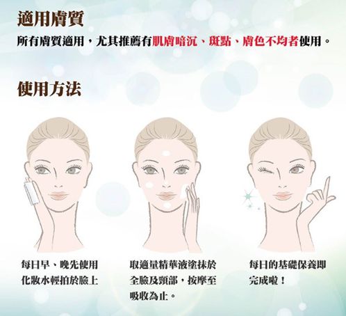 有一些人會上一層自己常用的精華液,再特別使用"CENLIS 聖黎詩 淨白無瑕精華液"在局部黑色素比較多的地方~