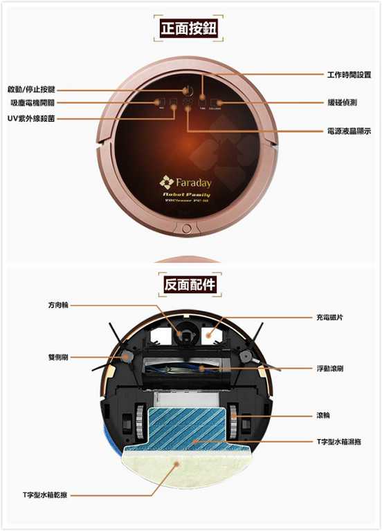 法拉第FARADAY3D潔淨機器人可同時乾溼拖地面清潔.能吸塵同時順一併進行拖地功能