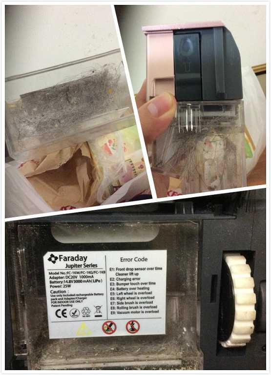 法拉第FARADAY3D潔淨機器人使用與設定上都很方便,我不用求救我男人自己就把他組裝完了(驕傲);主機本身要先裝入電池,同時可以看到集塵盒空間很大,迴路設計滿複雜的,我想這是讓他吸入的垃圾不會又掉出來吧? (我同學一直抱怨他家掃地機器人會邊吃邊吐= = 但這只是我個人猜想) 滾輪很靈活,不管是哪個方向都順暢運轉;打開電源後設定掃地模式、時間就好了,有人幫我掃地,我真的要翹腳看電視去當貴婦了(喔不,因為我本來就沒在掃,當貴婦的其實是我男人哈)