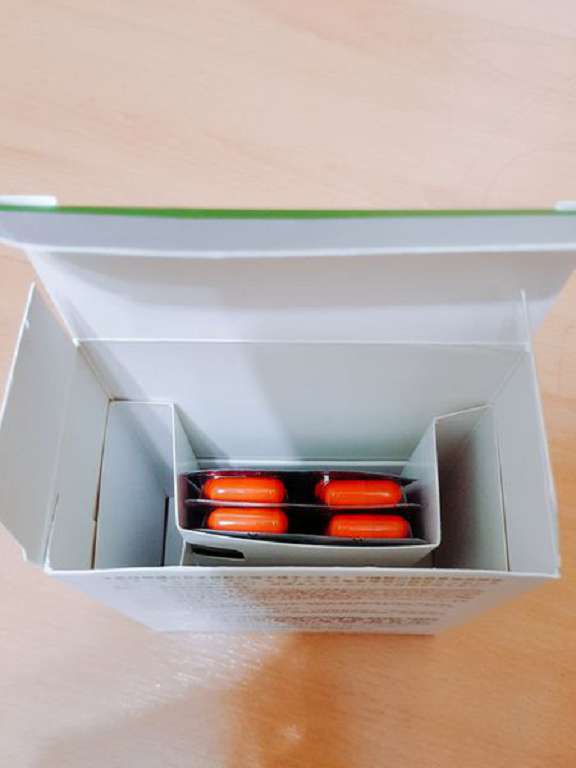 膠囊是亮橘色的外觀,聞起來沒有什麼味道,按照指示一天服用一顆。