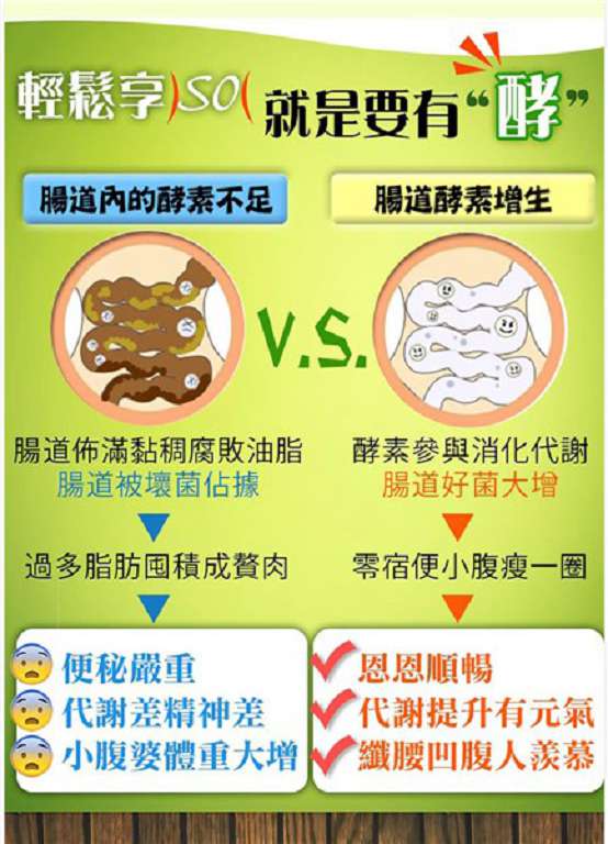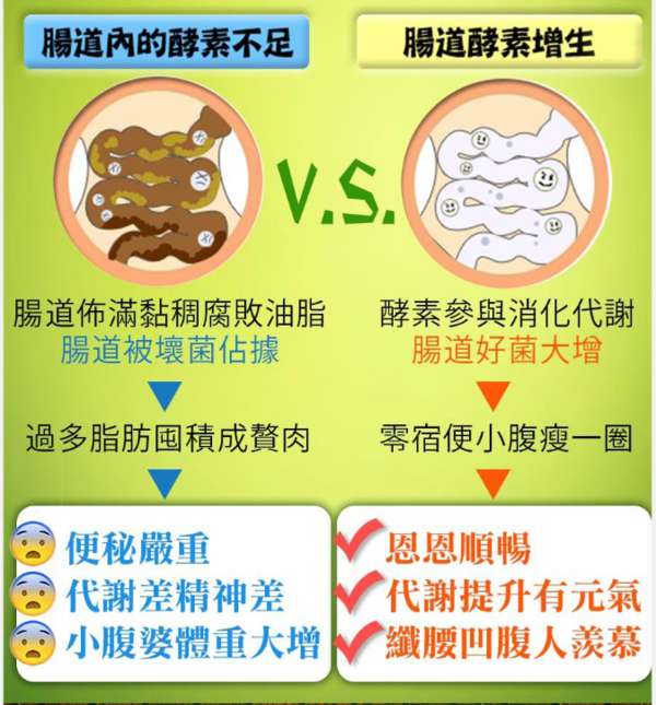 還能改善我們消化道和腸道機能,酵素能夠幫助消化代謝,增加腸道好菌,將腸道內多餘的油脂和毒素清出體外,真的是無便一身輕