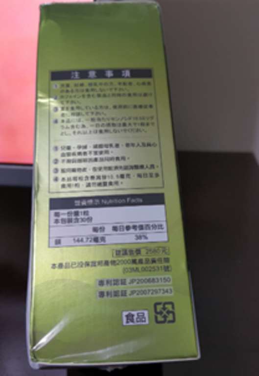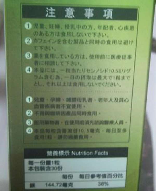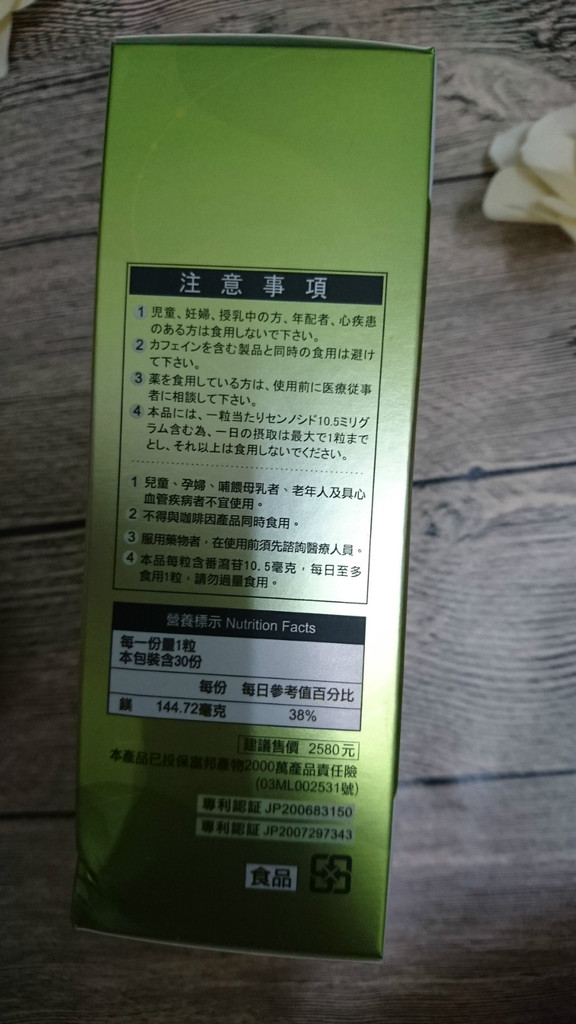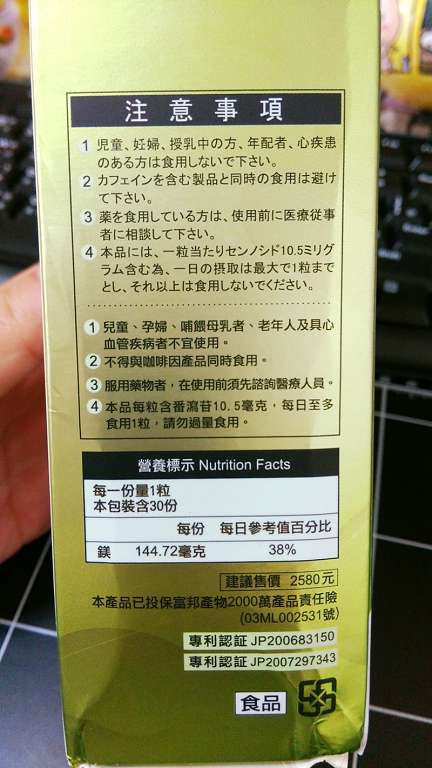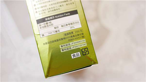 外盒背面有詳細的成份以及食用方法,上端是日文、下端是中文說明。