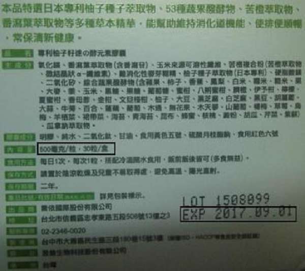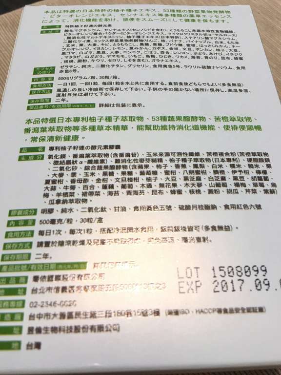 這款酵素裡頭含了柚子籽萃取物,還有苦橙萃取物以及53種蔬果酵素