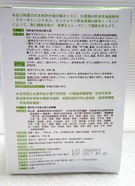 產品特選日本專利柚子種子萃取物,53種蔬果發酵物