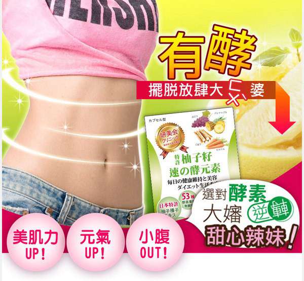 想要擺脫「小腹婆」的稱號嗎? 絕對不能錯過「妍美会專利柚子籽速の酵元素膠囊」!