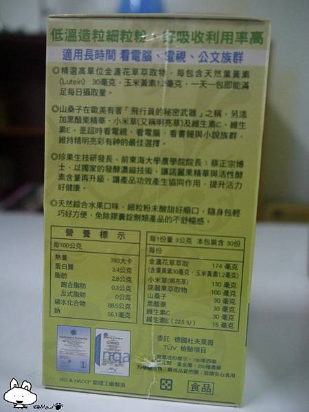其實他的營養成份還滿高的,並有ISO和HACCP認證工廠製造,檢驗合格,嚴格品質把關,這是最重要的!