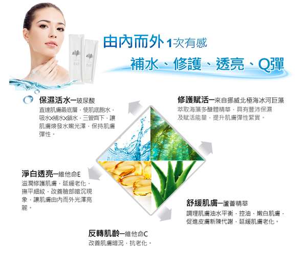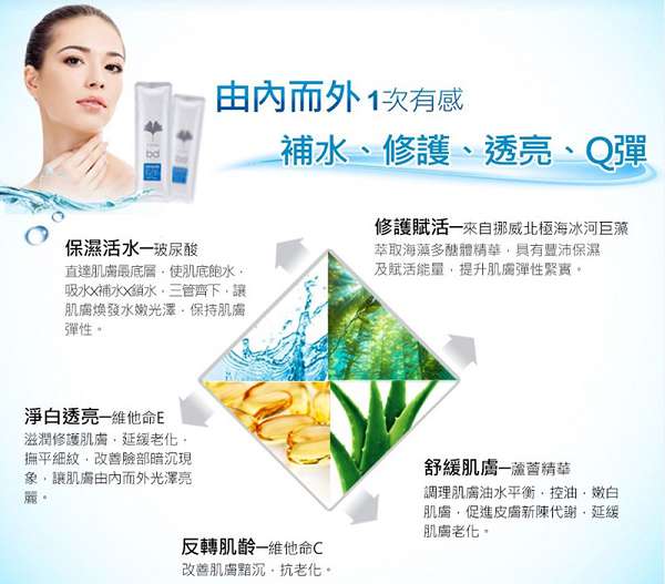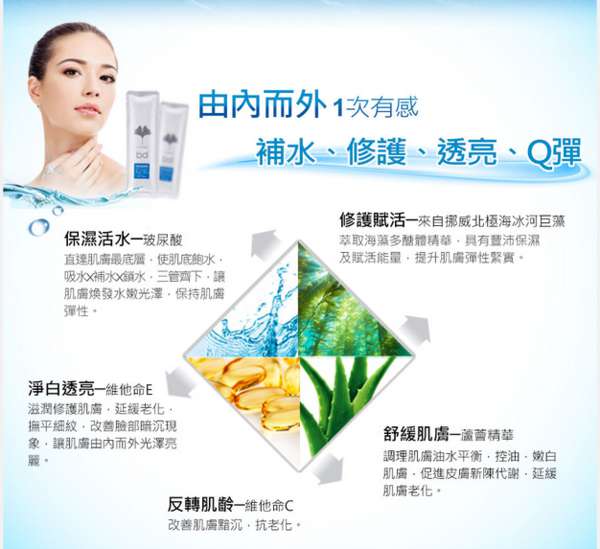 身體補水,使肌膚保濕、亮白、透亮、Q彈