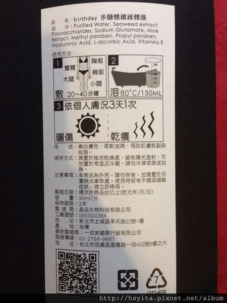 謝謝【女人知己試用大隊】提供的–birthday多醣體纖維體膜