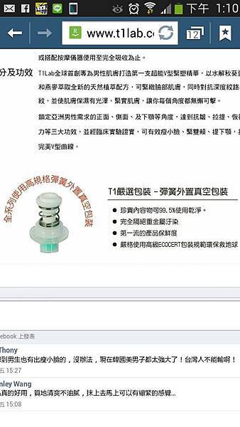 T1Lab全球首創專為亞洲男性肌膚打造第一支超能V型緊塑精華~ 它可是號稱讓你在10分鐘的短短時間使用後…就有感覺唷~~ 最近Judy臉也圓了許多,身材圓…可以遮掩,但…臉可是騙不了人的 連我都想用了呢!!(下圖引自官網)