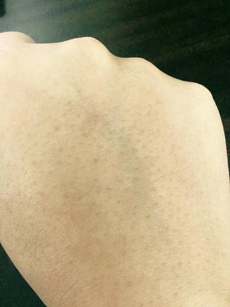 用個比較圖就可見端倪~~ 使用過後的肌膚明顯變得細緻有光澤→也有可能是順便去角質的關係~~~ 而未使用過的手背顯得較為粗糙暗沉
